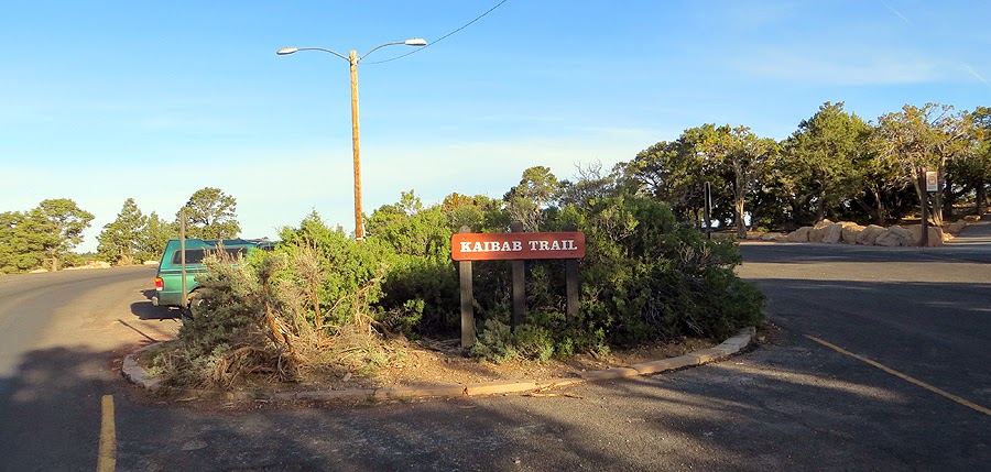 - I stayed in Flagstaff and drove to the park really early, so early in fact (5:30 am), that there where no rangers at the gate so I got in for free! I drove to the Back County Exchange parking lot and decided to bypass taking the shuttle and take a nice five mile walk on the Rim Trail over to South Kaibab trailhead. The Rim Trail is a tourist trail; it's flat, paved and has many outlooks along the way. It's a nice walk early in the morning, there were a few people out and about to photograph sunrise and I even saw an elk (or a big deer) along the way. Temperatures where comfortable, in the high forty range at the beginning and warmed up to the mid fifties by the time I started my hike into the canyon.