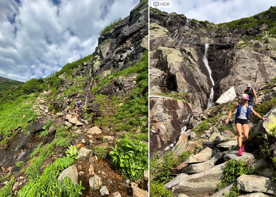 Heading into Lunch Rocks looking up at the headwall and its "Falls of a Thousand Rivers"